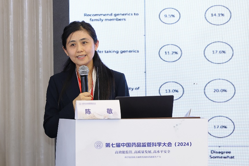 2024年10月26日,由中国药品监督管理研究会主办的第七届中国药品监管科学大会在京成功举办。大会为期两日,紧扣“高效能监管、高质量发展、高水平安全——科学监管赋能医药新质生产力加速发展”的主题,设置了主题报告及13个分论坛。来自药品监管部门、医药行业学术界及产业界的代表齐聚一堂,共议监管热点。药学院药事管理与临床药学系陈敬教授出席并作了题为“关于我国仿制药替代问题的思考”的主旨演讲。此次大会为推进监管科学研究、强化监管科学创新提供了有力支撑,对全面提升药品监管效能及推动药品监管现代化进程作出了积极贡献.